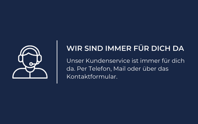 Wende dich dich telefonisch (040 378 633 12) oder per Mail an unseren Kundenservice. Du erreichst uns von Montag bis Freitag von 8.30 - 16 Uhr.